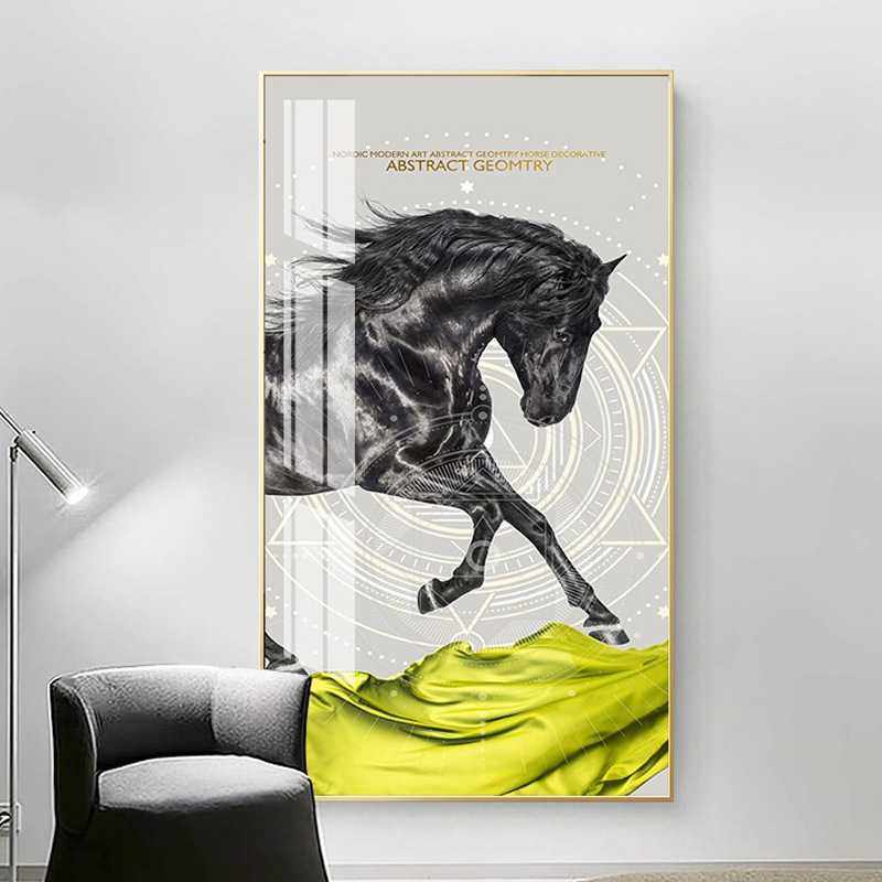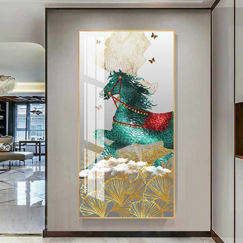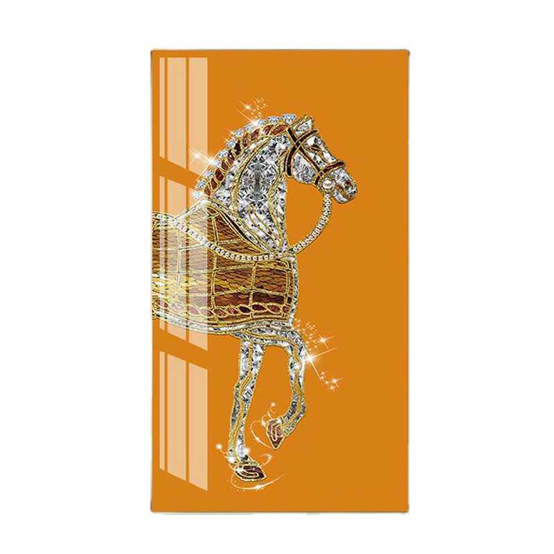 入户玄关装饰画简约现代橙色骏马挂画走廊尽头过道晶瓷客厅墙壁画