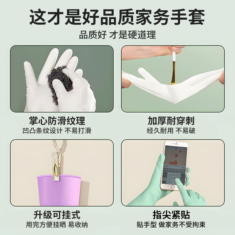 洗碗手套女家用厨房耐用型贴手防水胶皮手套刷碗做家务清洁洗衣服