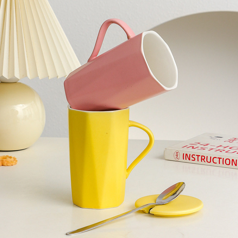 北欧陶瓷马克杯办公简约马克杯八角杯子咖啡杯家用公司开业伴手礼