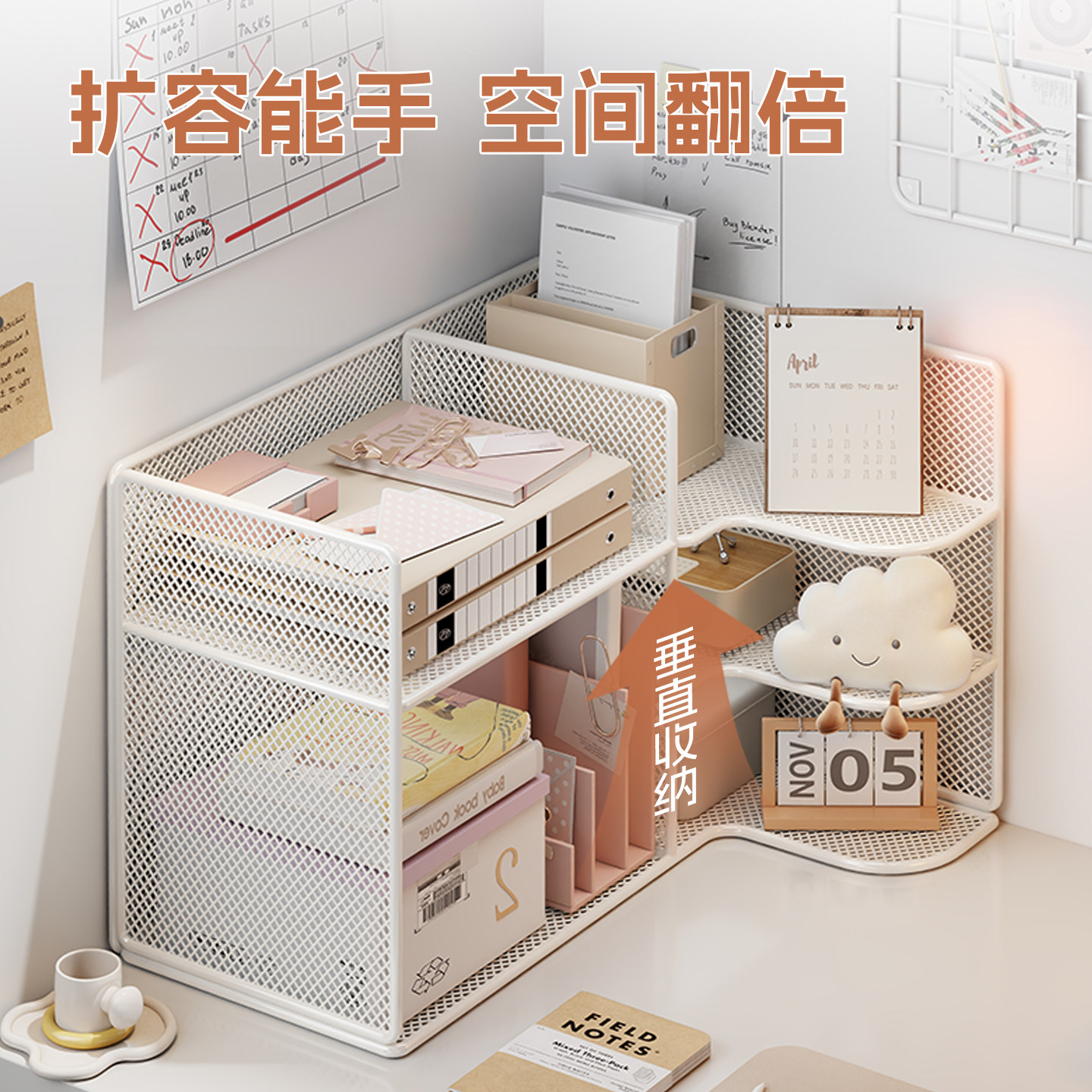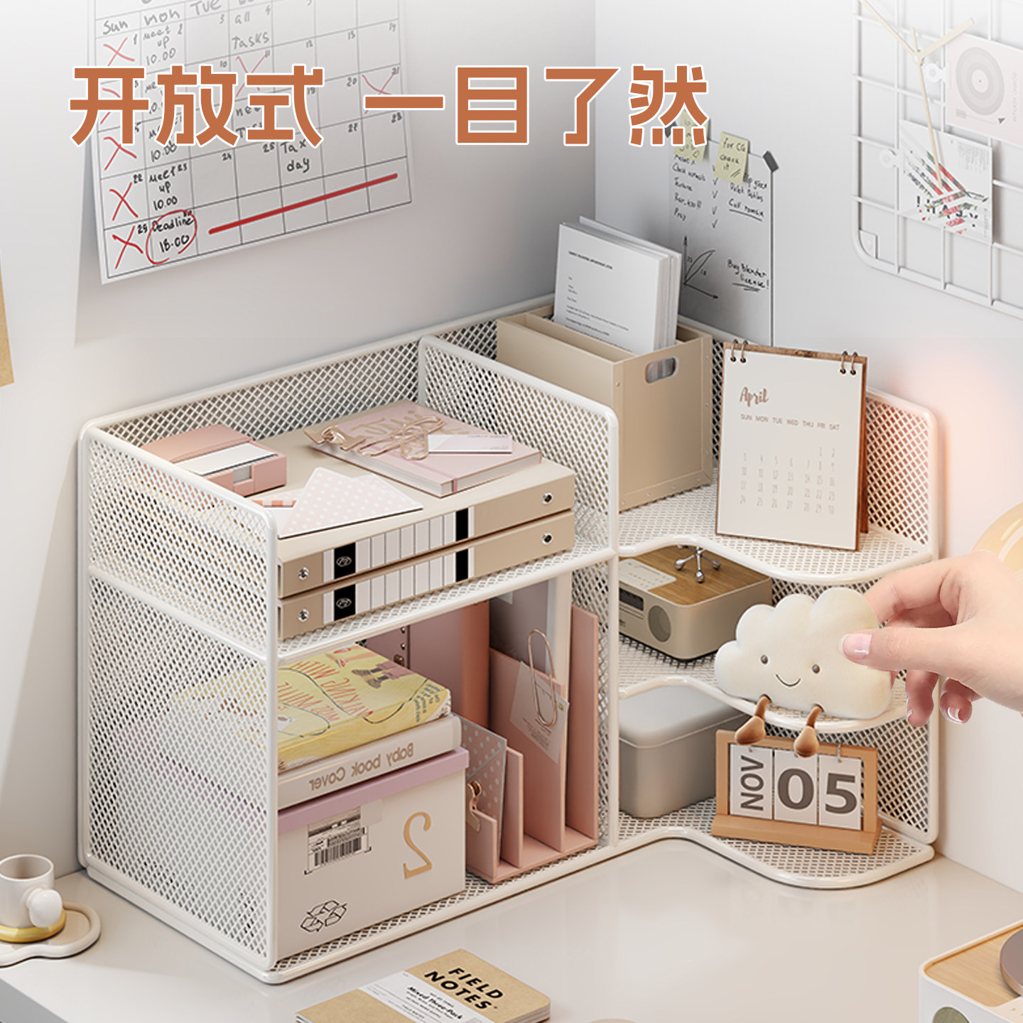 转角书架桌面置物架简易办公室台面多功能分层分类文件工具收纳架