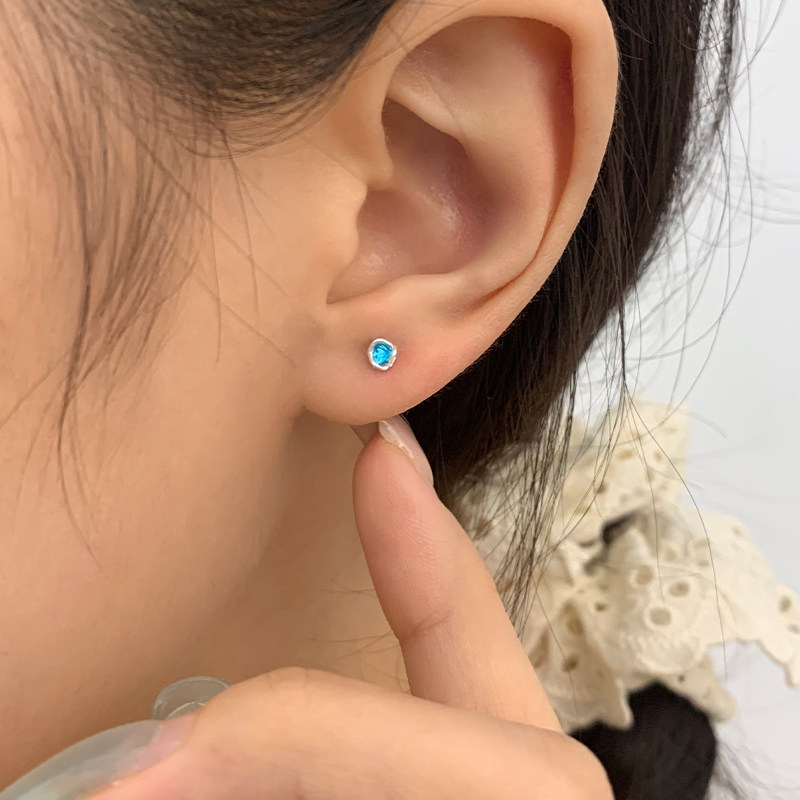 S925纯银针迷你锆石耳钉女高级感精致小巧养耳洞耳环睡觉免摘耳饰