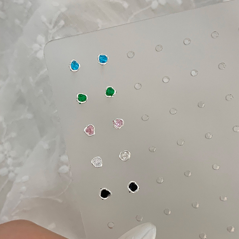 彩色猫眼石银针耳钉套装女夏日圆脸养耳洞耳环小巧精致高级感耳饰