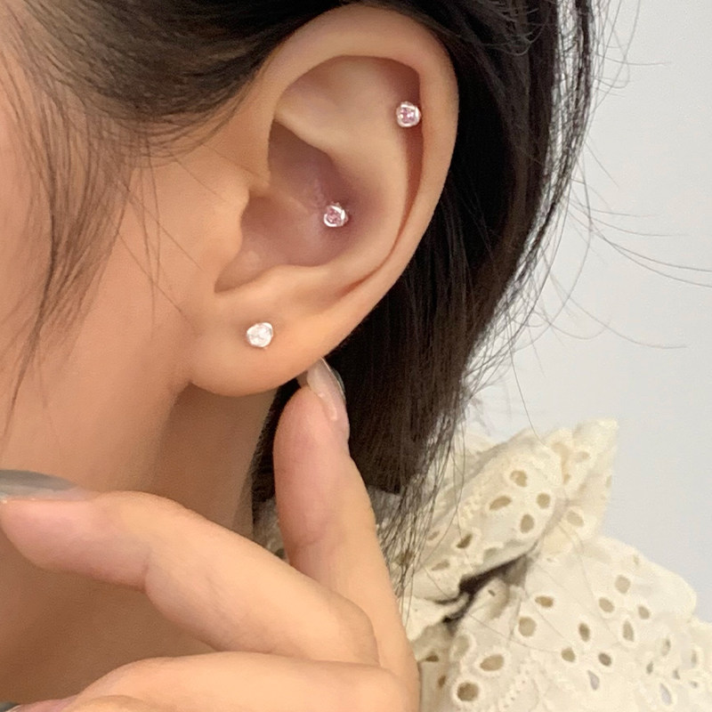 999纯银耳钉女养耳洞耳骨钉小众高级感锆石耳蜗钉水钻耳环银耳饰