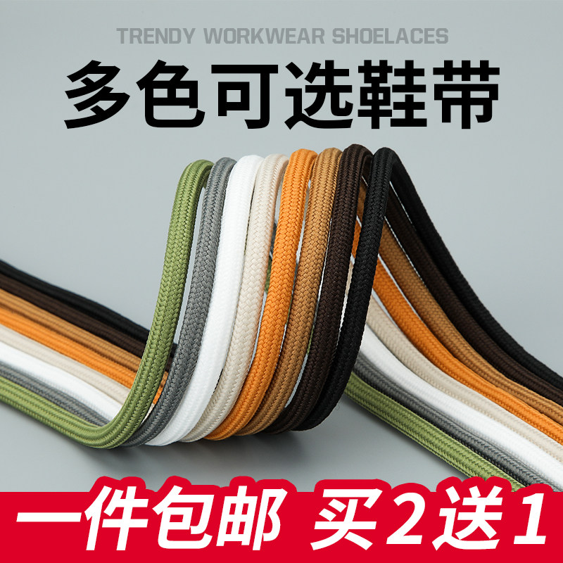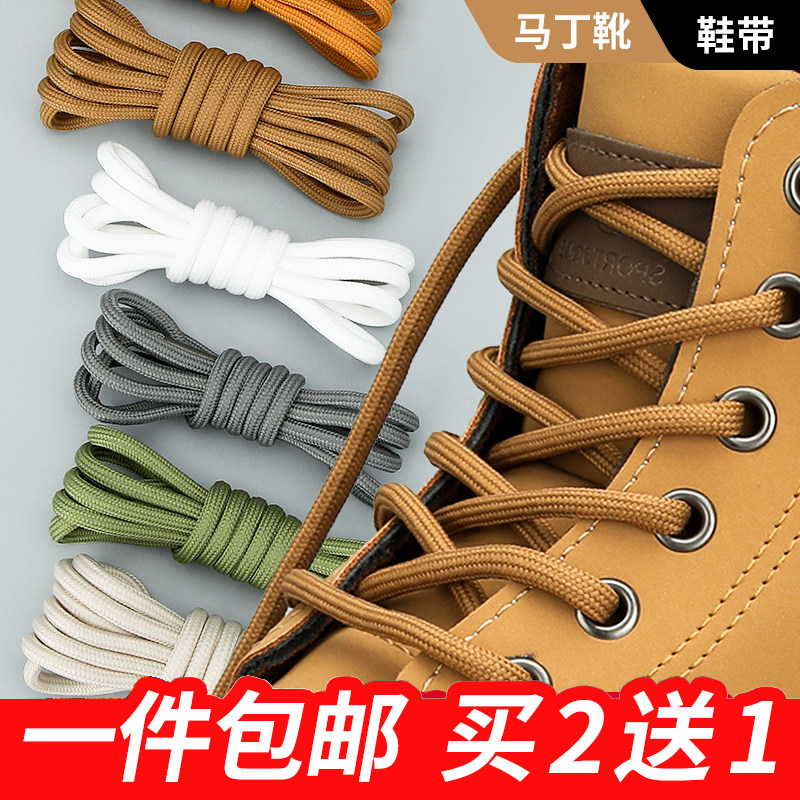 马丁靴鞋带绳圆形cat工装靴大黄靴加粗男款女款黑色白棕色圆鞋带