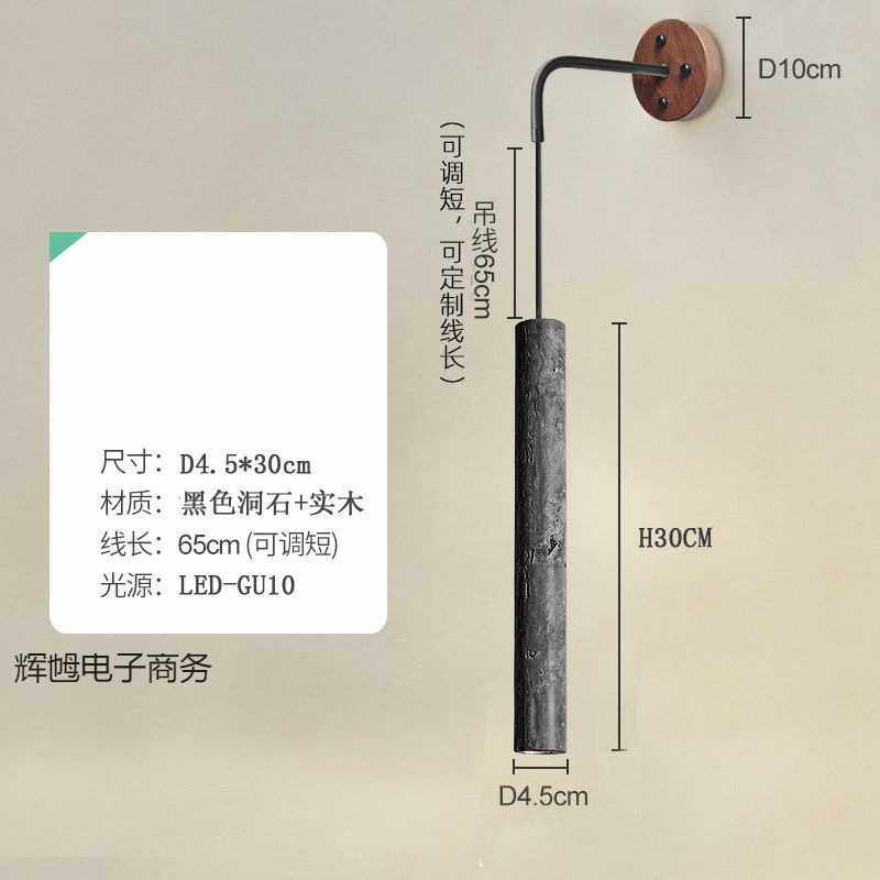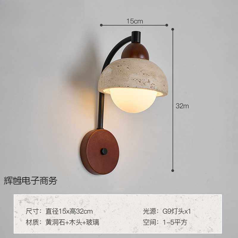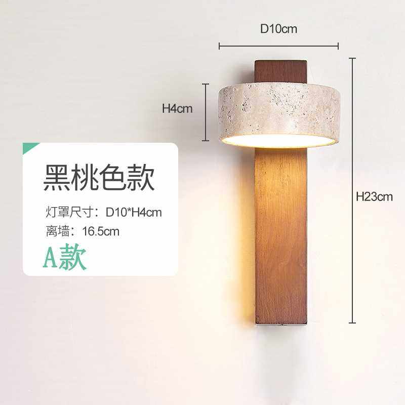 黄洞石实木卧室床头壁灯带开关可旋转线中古民宿侘寂风过道灯具