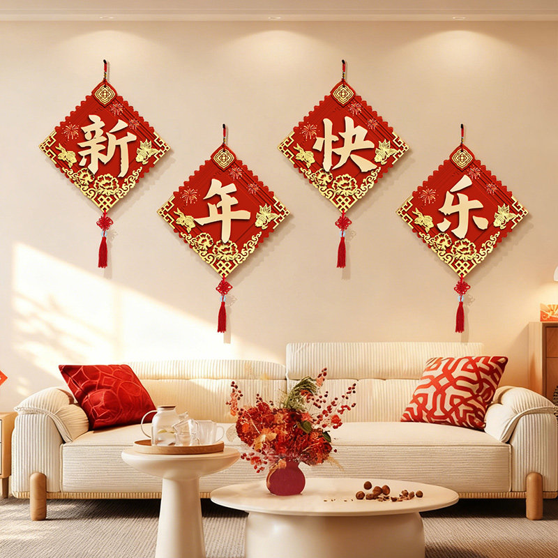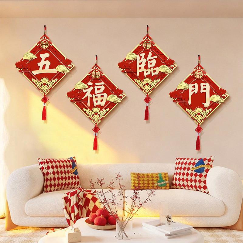 五福临门客厅装饰画沙发背景墙挂画寓意好中国结组合装饰挂件多副