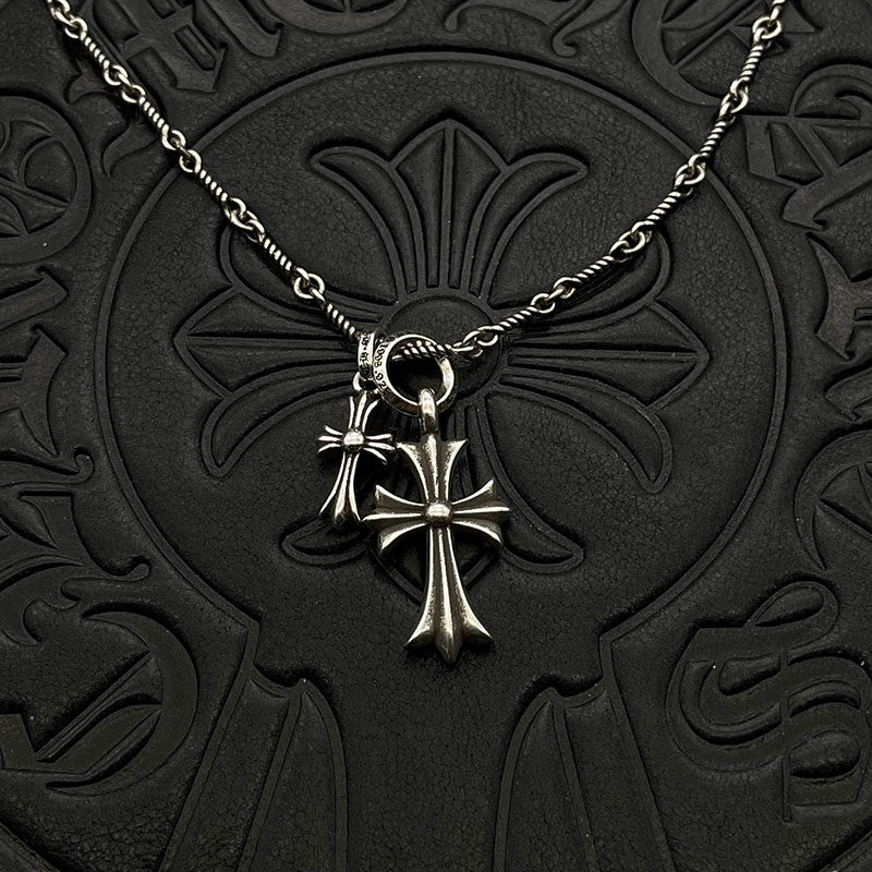 克罗伈双十字架项链男女欧美嘻哈个性十字架吊坠经典复古做旧