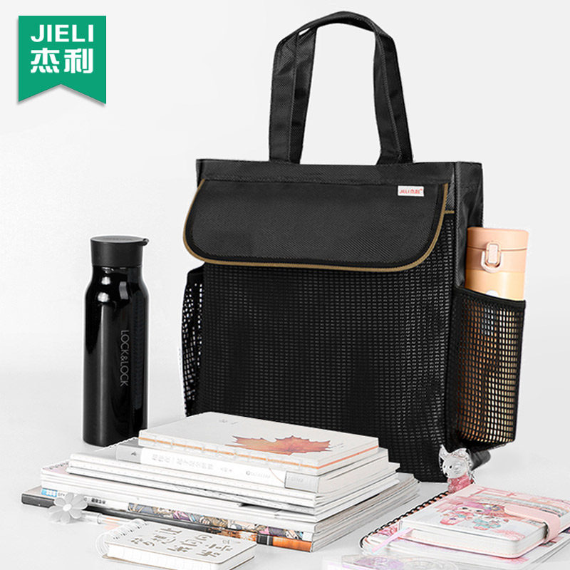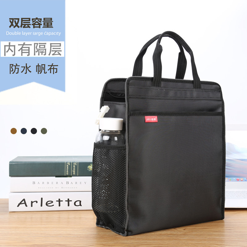 培训班手提袋定制印刷LOGO竖式牛津布文件袋学生补习袋A4书本资料袋手拎文件包带水杯网兜帆布防水大容量书袋