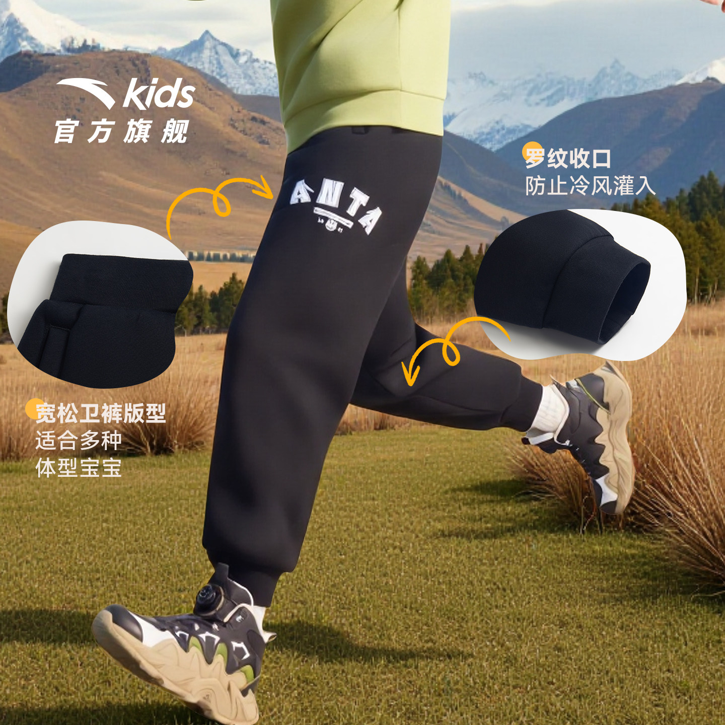 安踏儿童男童加绒加厚裤子秋冬款2025冬季新款棉裤长裤卫裤运动裤