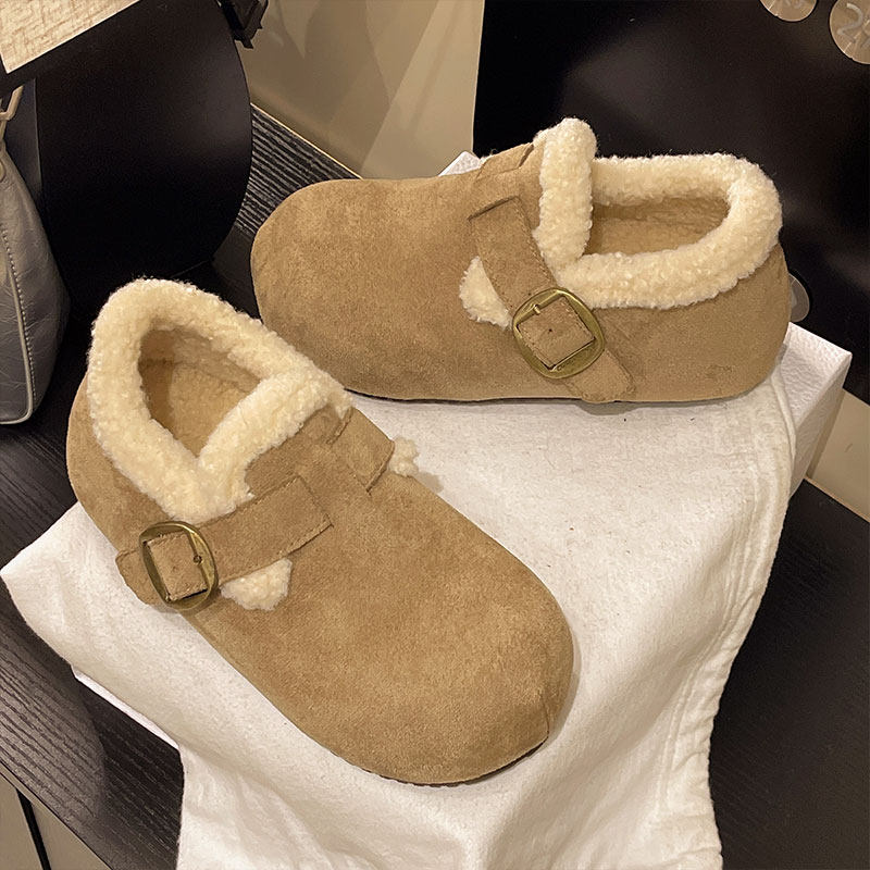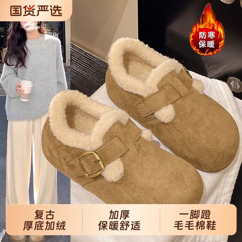 复古厚底加绒豆豆勃肯鞋女冬季2025新款一脚蹬毛毛棉鞋保暖雪地靴