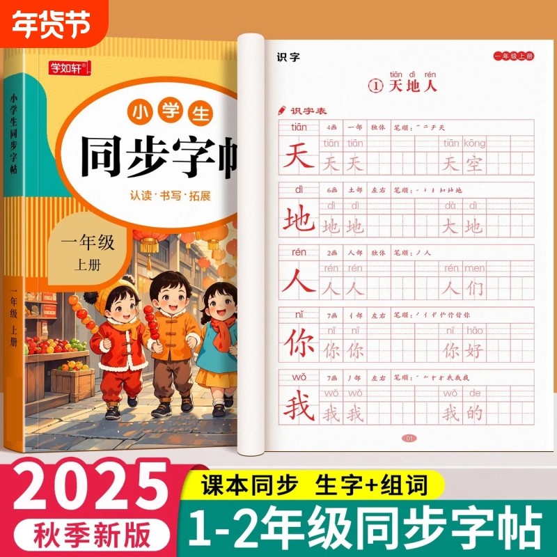 2025新版一年级二年级三年级上册同步练字帖小学生专用四五六年级二类语文人教版练字字帖练习册笔画笔顺临摹练习写字每日一练组词
