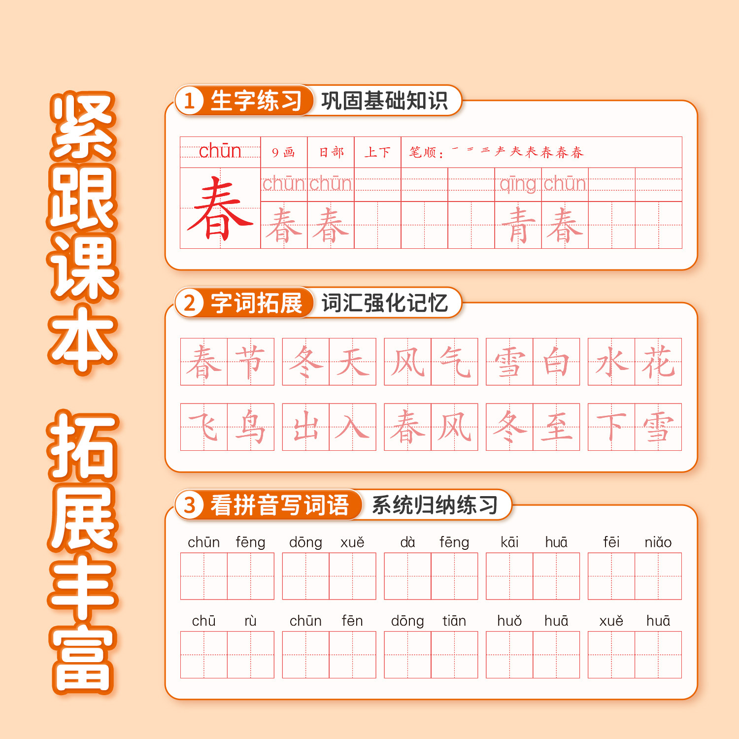 六品堂课前预习练字帖二年级三四年级上册下册小学生专用语文同步字帖每日一练人教版课本生字组词段落描红钢笔书写练字硬笔书法