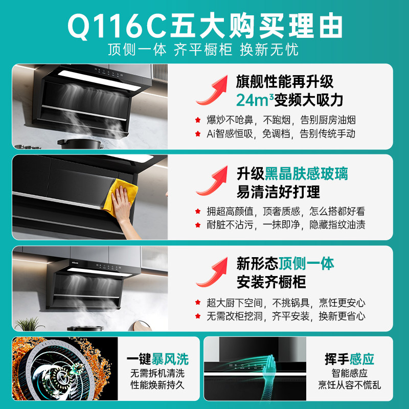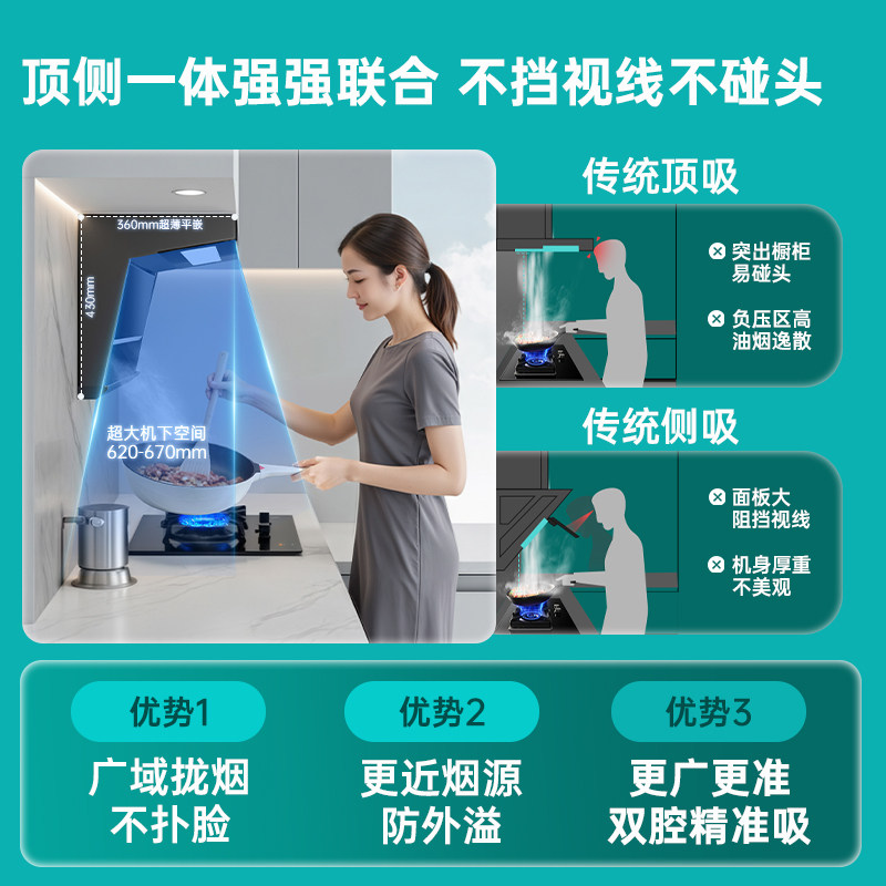 四季沐歌顶侧双吸油机家用大吸力抽烟机7字型自动清洗厨房油烟机