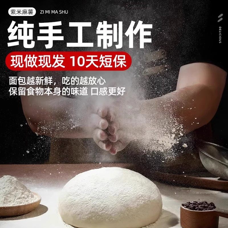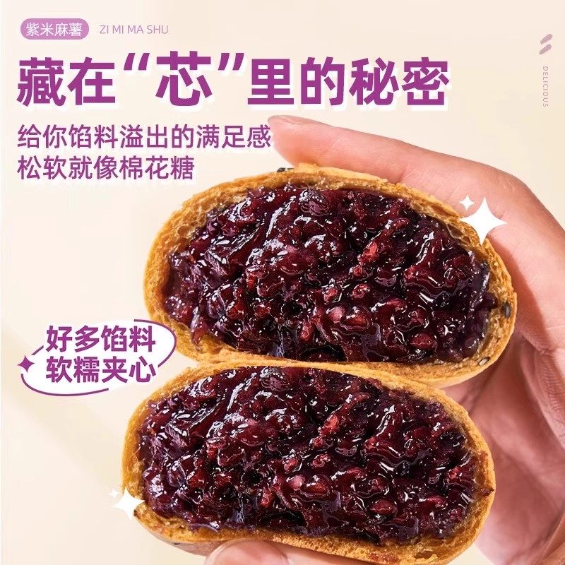 紫米麻薯夹心面包爆浆球五黑饼糕点早餐代餐休闲零食旗舰店饱腹