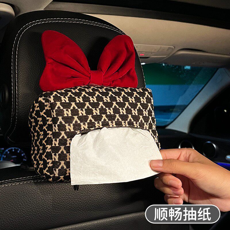 新款车载纸巾盒挂式创意可爱简约扶手箱高级汽车抽纸盒挂袋装饰女