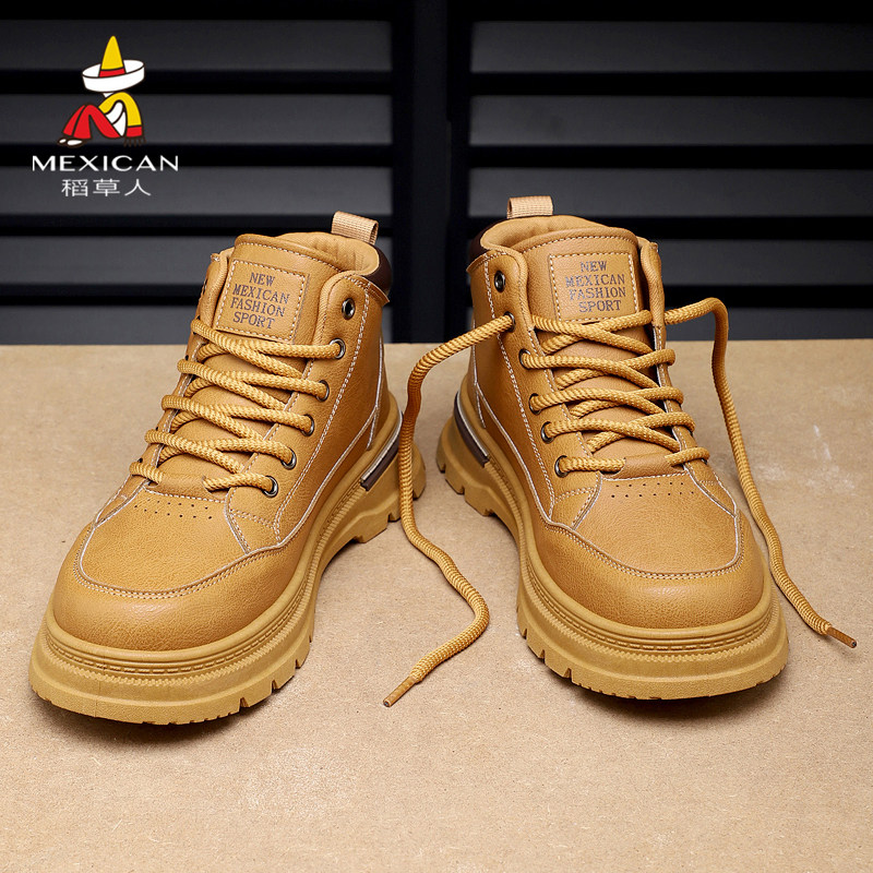 【王俊凯同款】骆驼马丁靴男鞋冬2025新款男生增高加绒户外大黄靴
