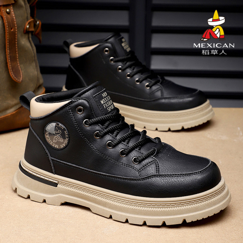 稻草人马丁靴男2025新款工装短靴百搭加绒棉鞋秋冬英伦户外靴子男