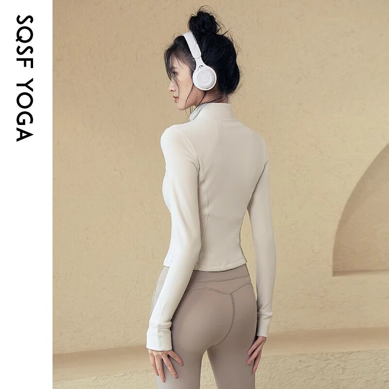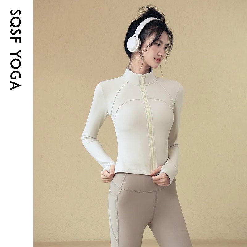 秋冬新款加绒瑜伽外套女显瘦立领运动上衣跑步训练健身服大码速干