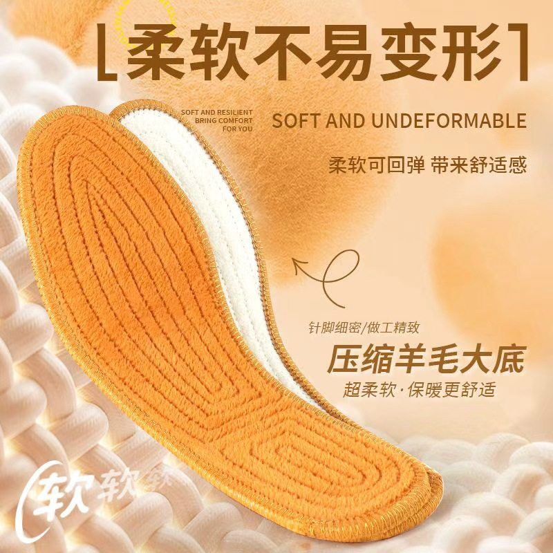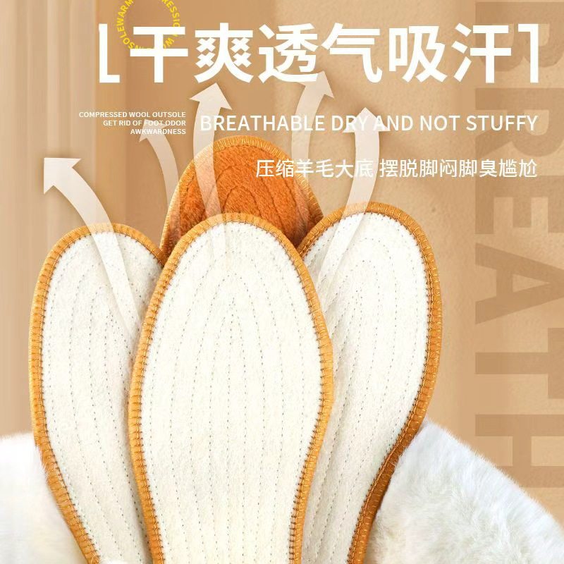 压缩羊毛鞋垫冬季保暖男加绒加厚防臭透气吸汗毛绒羊绒棉鞋垫女款