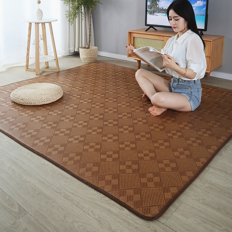日式藤席地毯客厅卧室床边爬行垫榻榻米垫子凉席地垫房间圆形地面