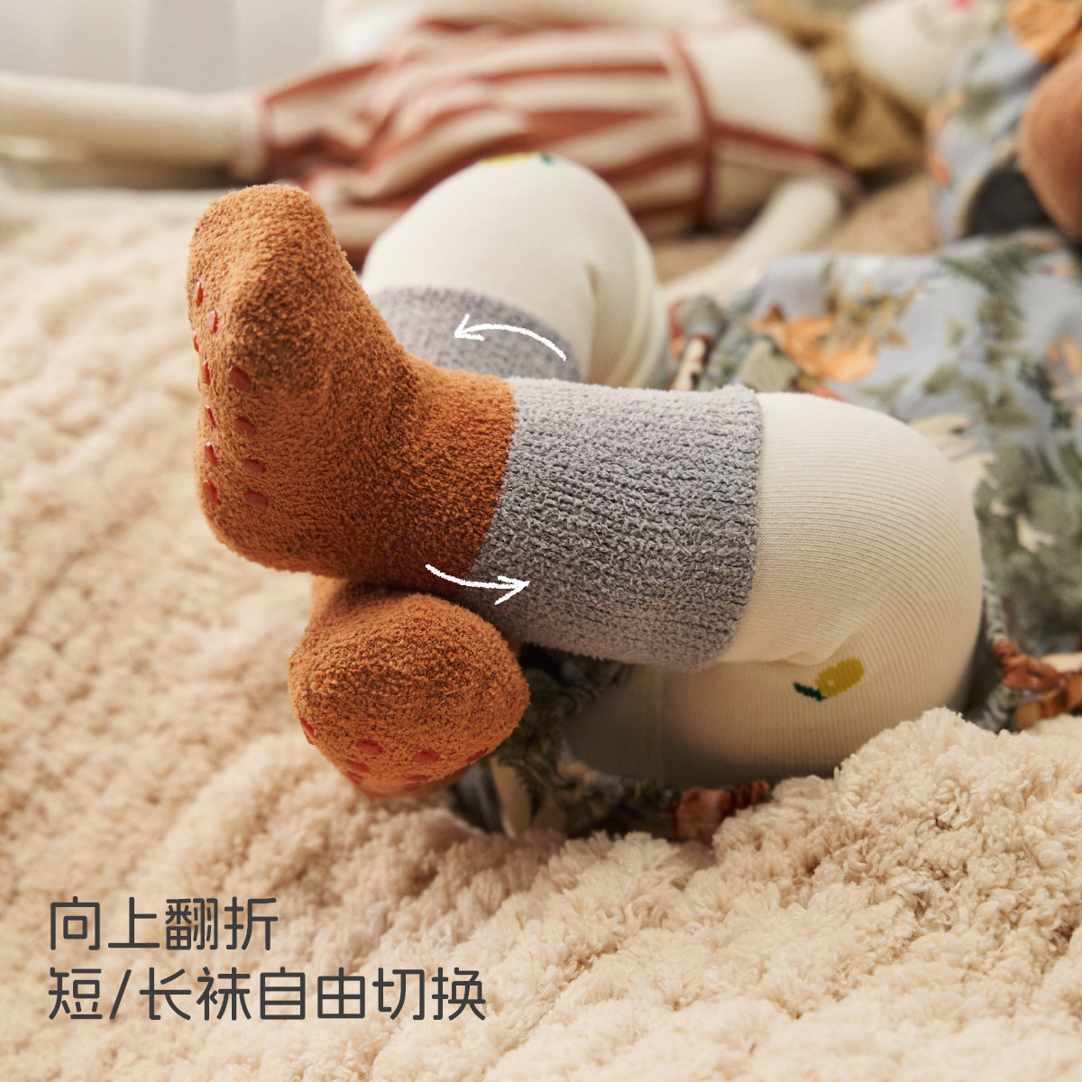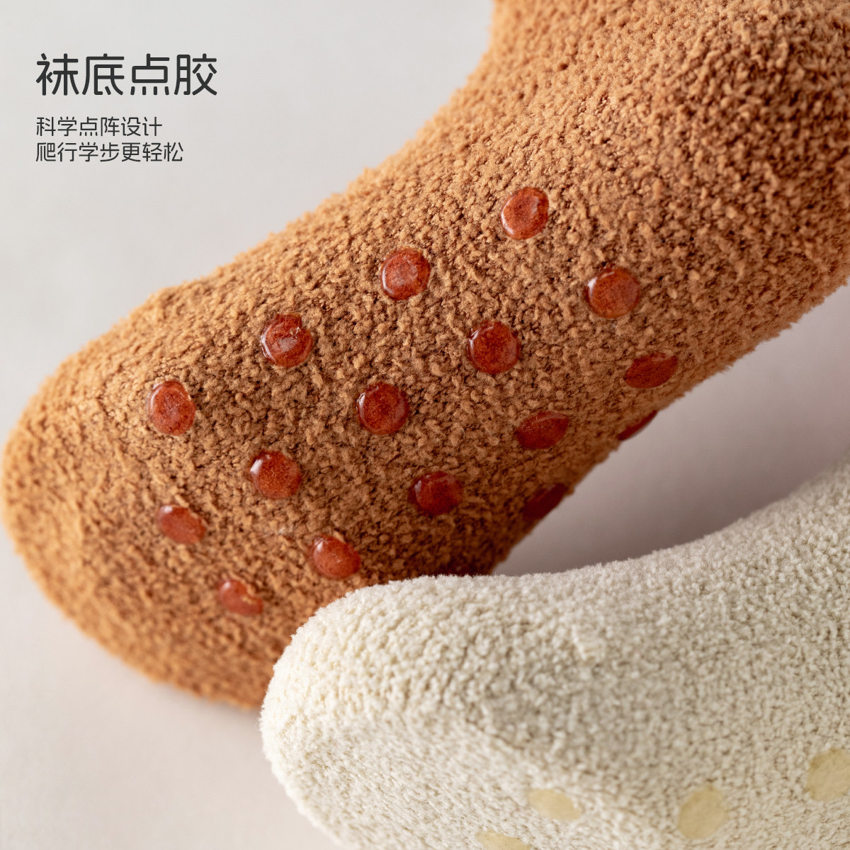 aqpa爱帕儿童婴儿袜子毛绒学步袜秋冬加厚保暖男女新生宝宝防滑袜