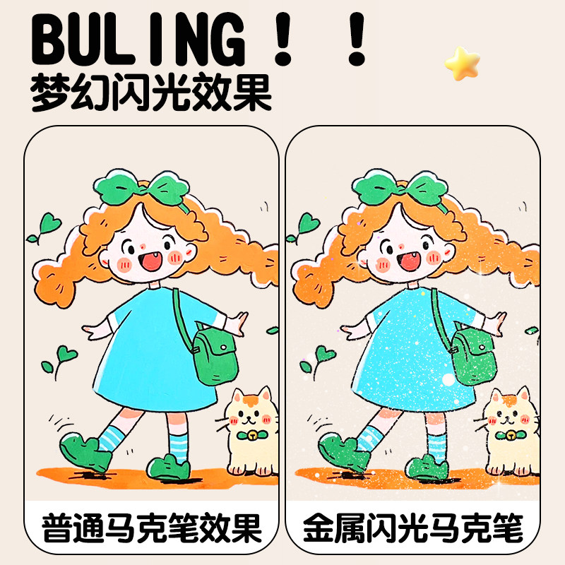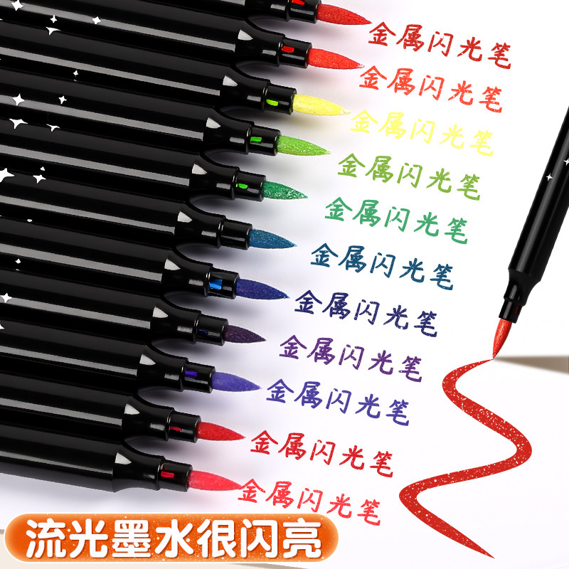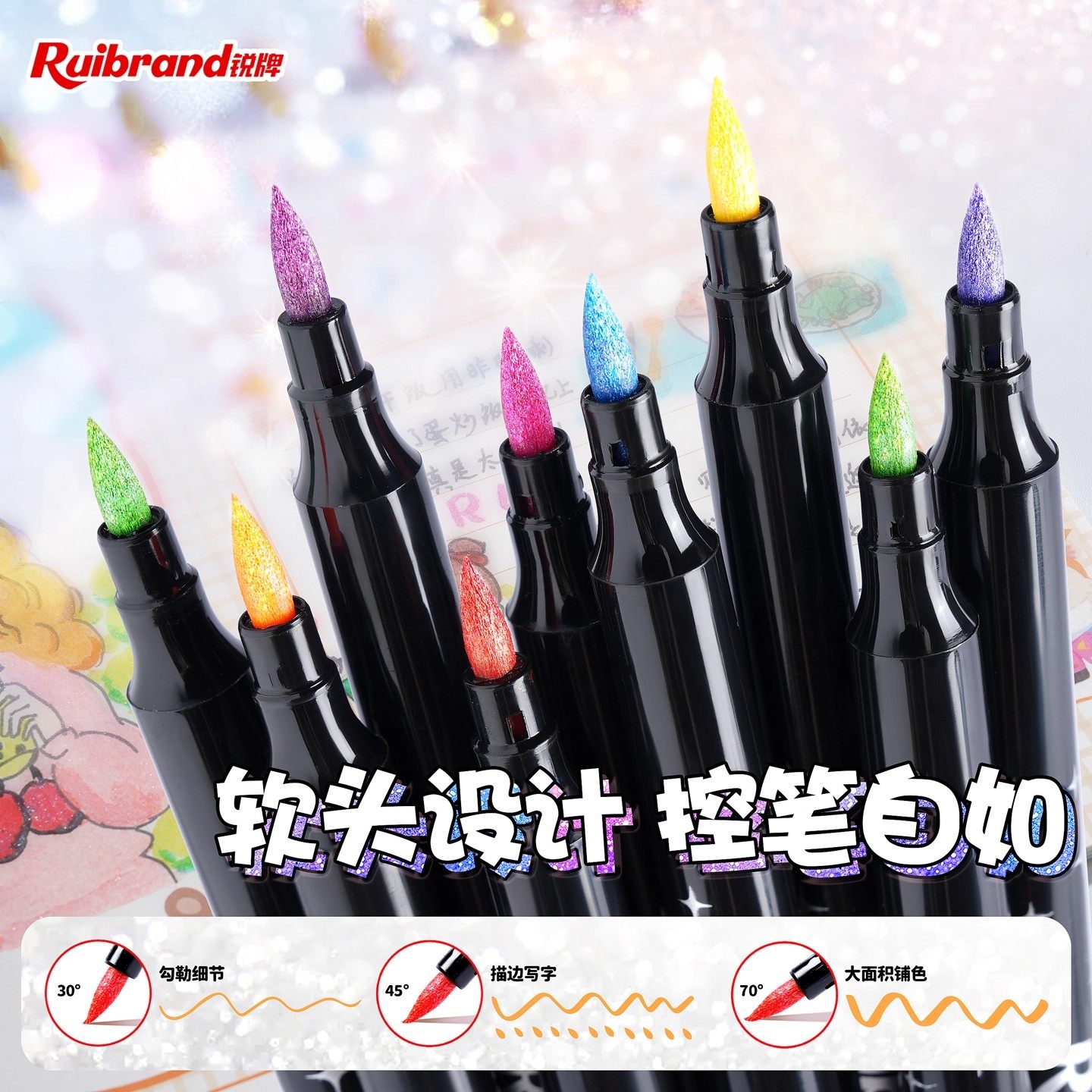 安格尔闪光马克笔笔荧光带闪粉闪闪荧光笔闪粉水彩笔记号笔珠光绘画亮片彩笔儿童学生专用彩绘手账笔炫彩笔