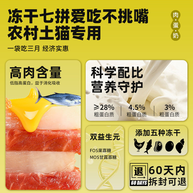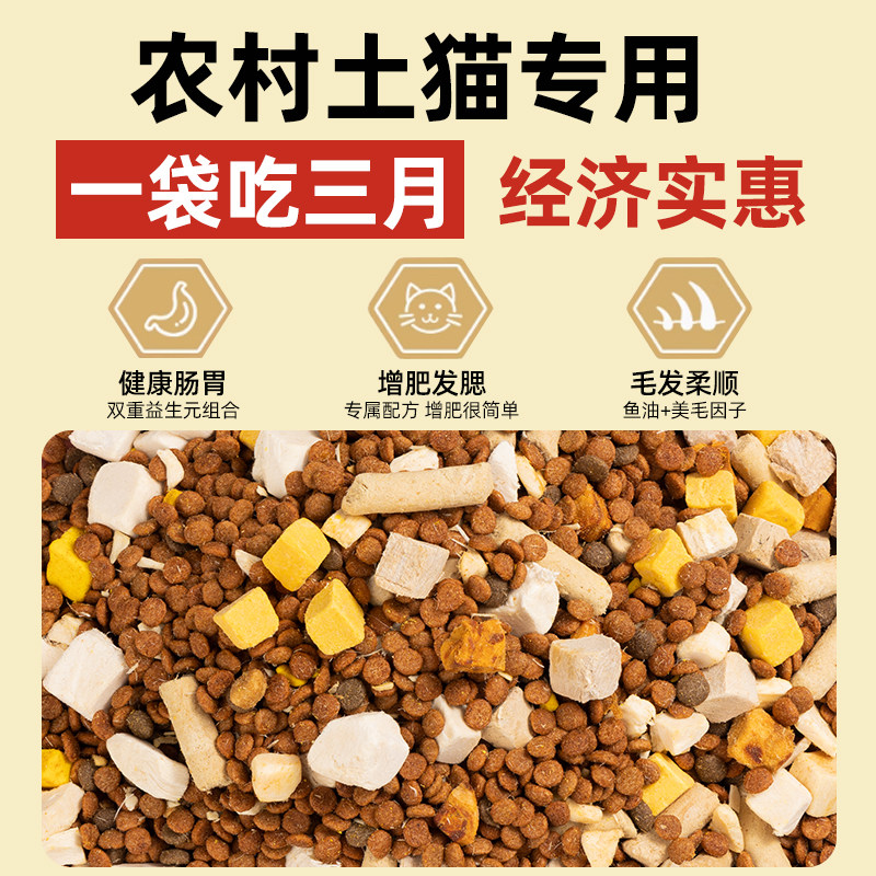 土猫猫粮专用10斤实惠装农村成猫流浪猫幼猫冻干全价营养平价20斤