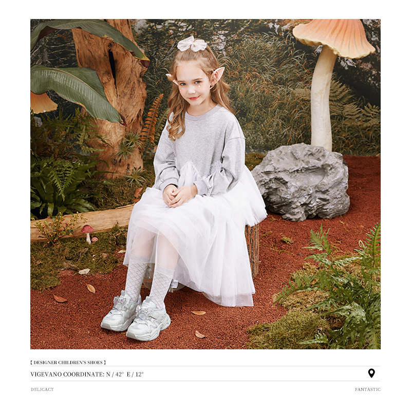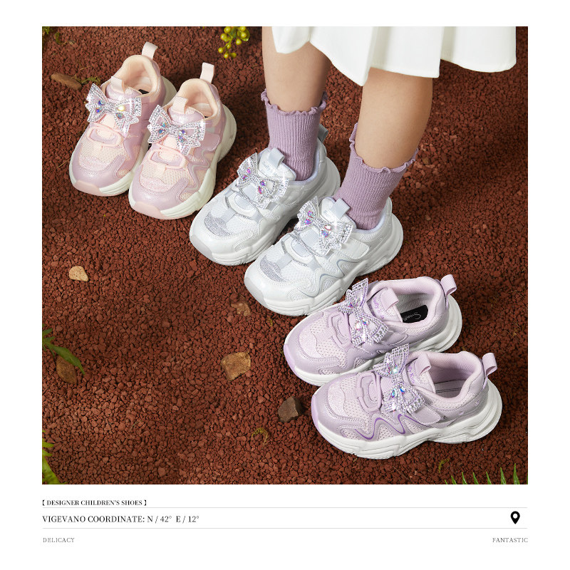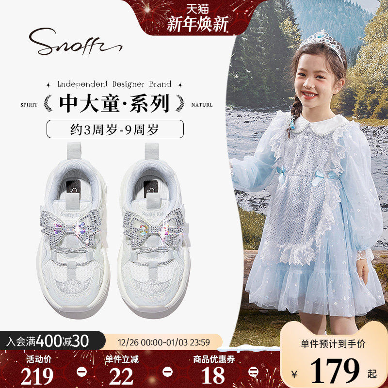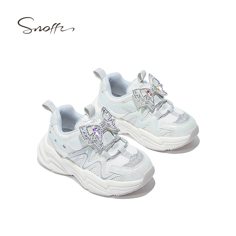 斯纳菲女童运动鞋秋冬款小女孩银色水晶公主鞋软底防滑低帮休闲鞋