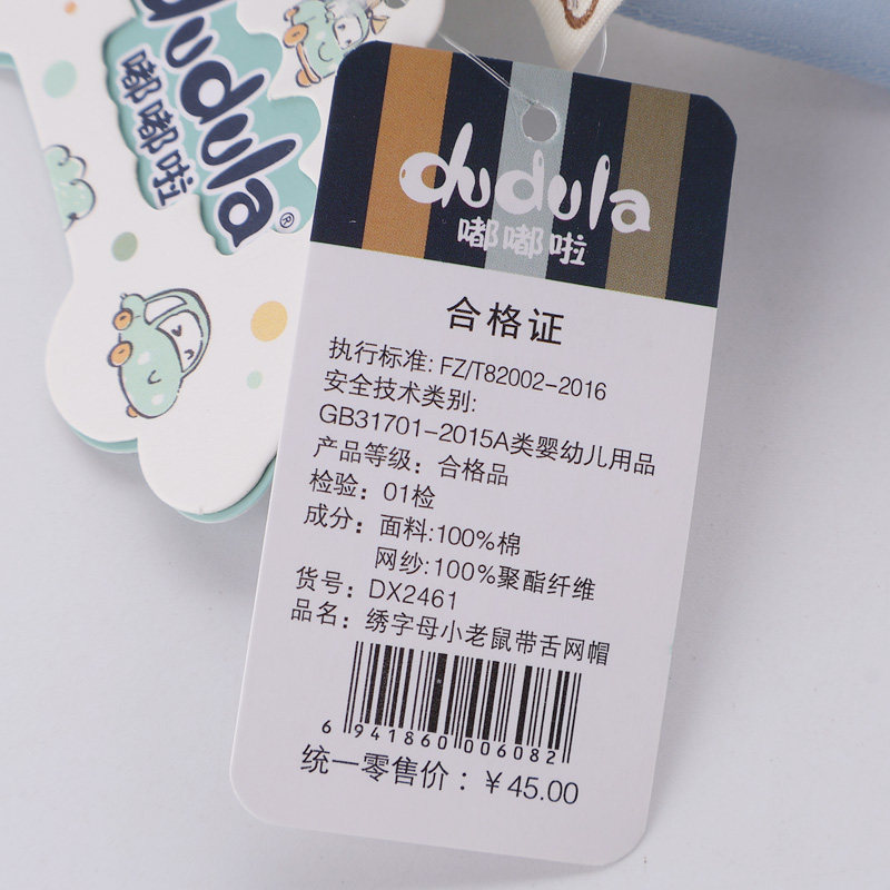 嘟嘟啦夏季男女宝宝帽子婴幼儿童外出可爱卡通鸭舌帽透气遮阳凉帽