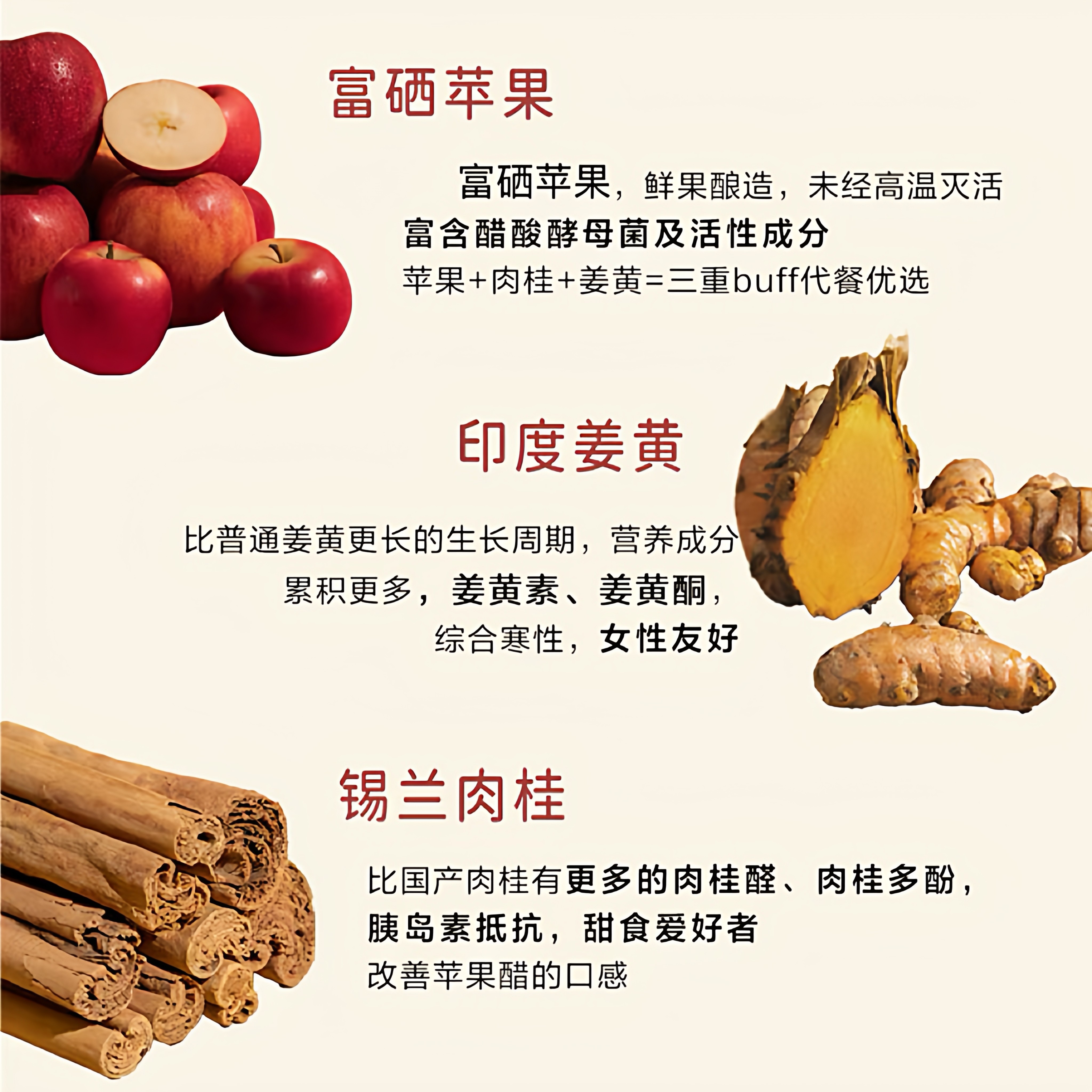 植物能量肉桂姜黄苹果醋无添加非饮料鲜果酿造健身果醋饮品小包装