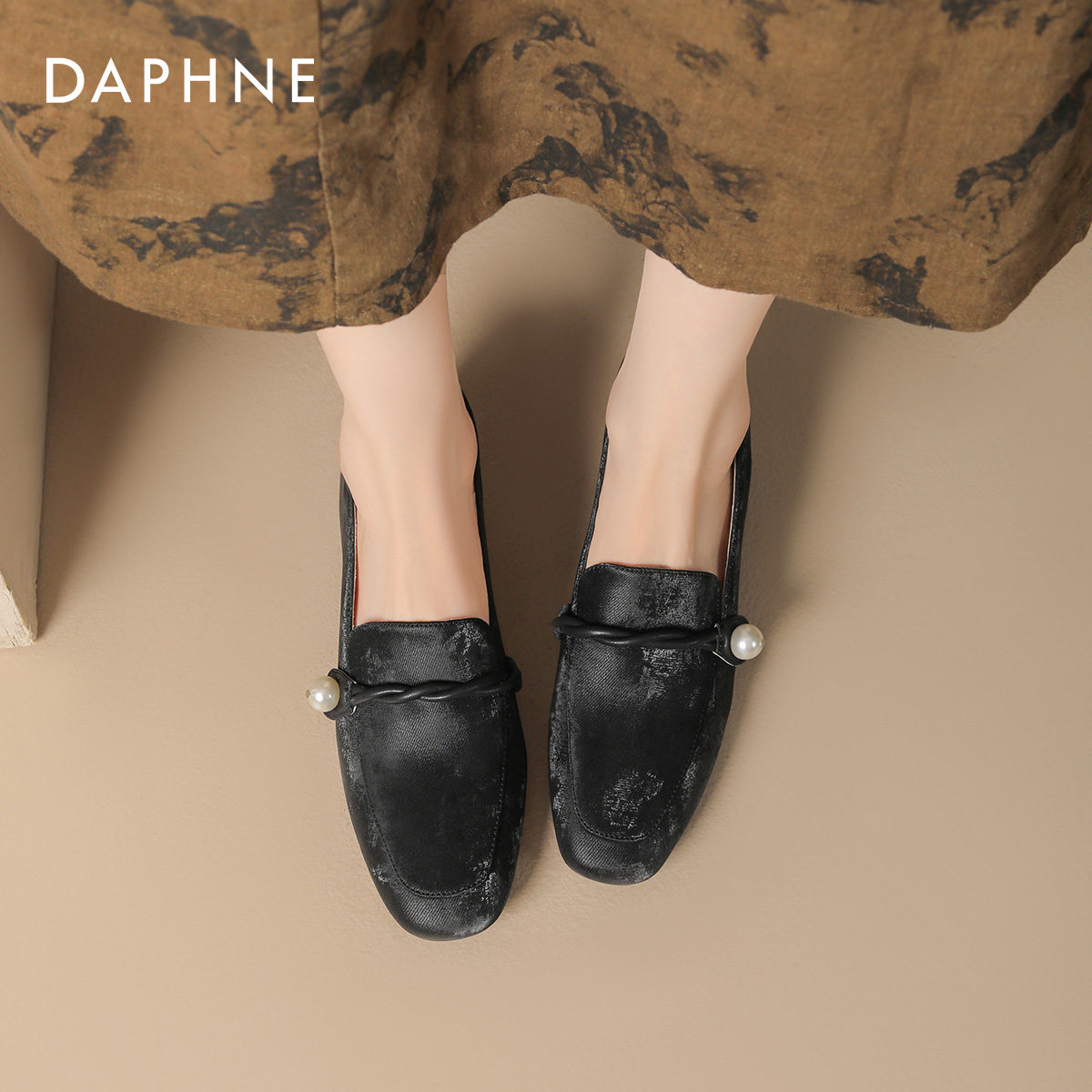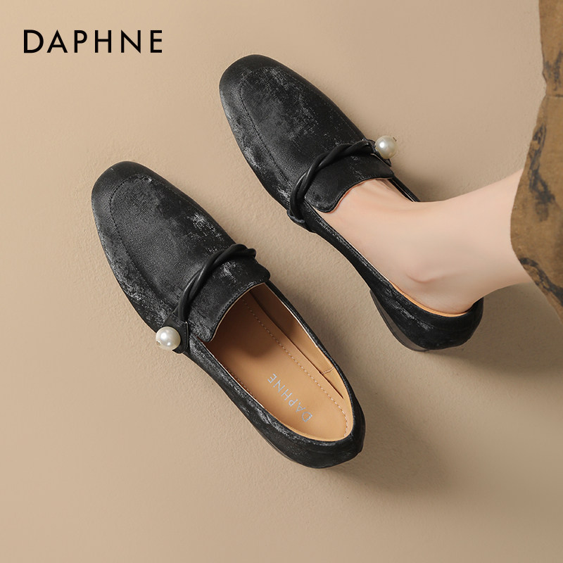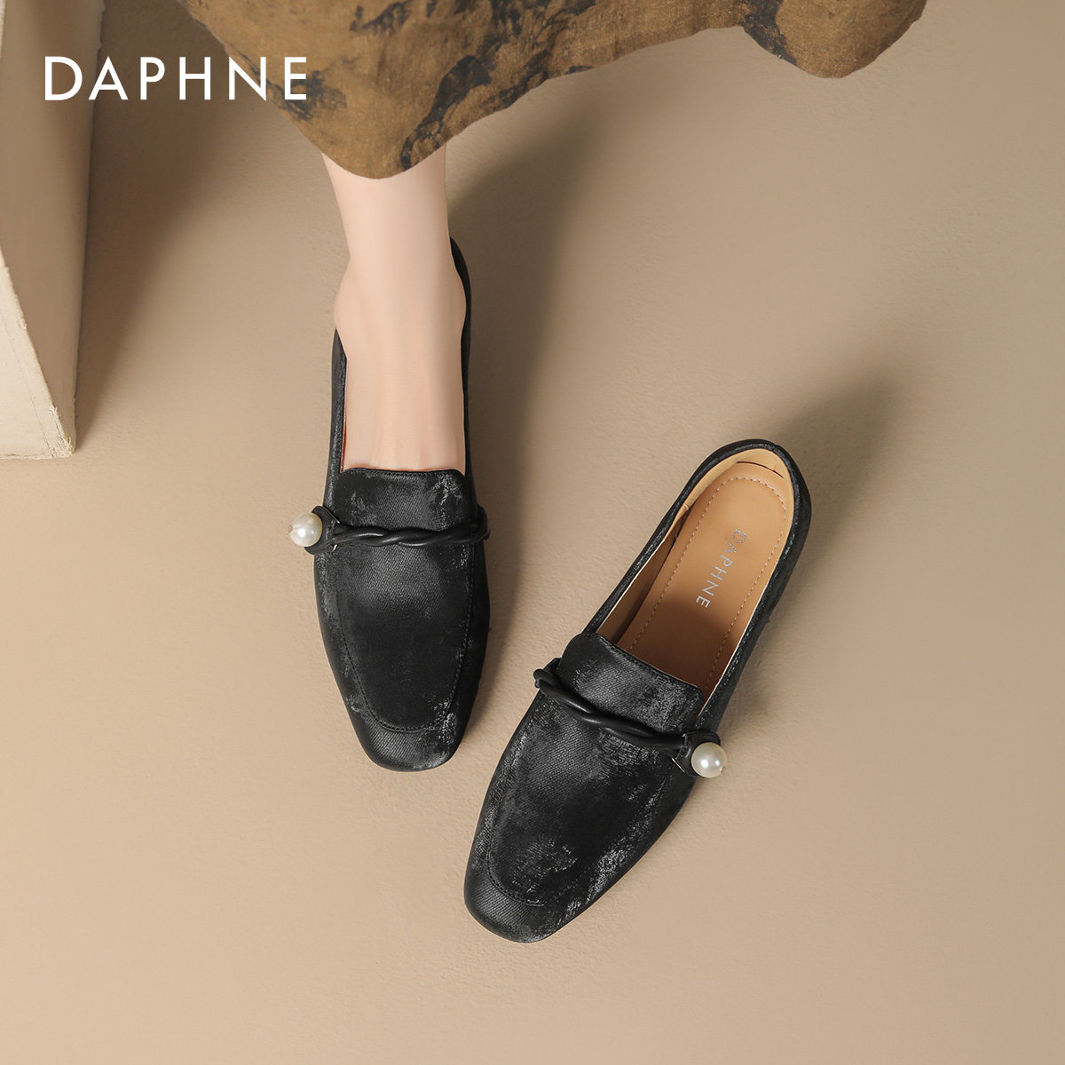 达芙妮粗跟乐福鞋女2026新款新春季新中式小皮鞋一脚蹬单鞋豆豆鞋