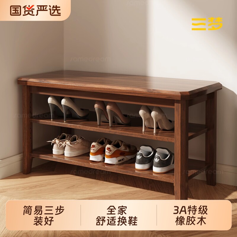三梦鞋柜实木换鞋凳室内好看入户门口多层收纳一体家用可坐鞋架子