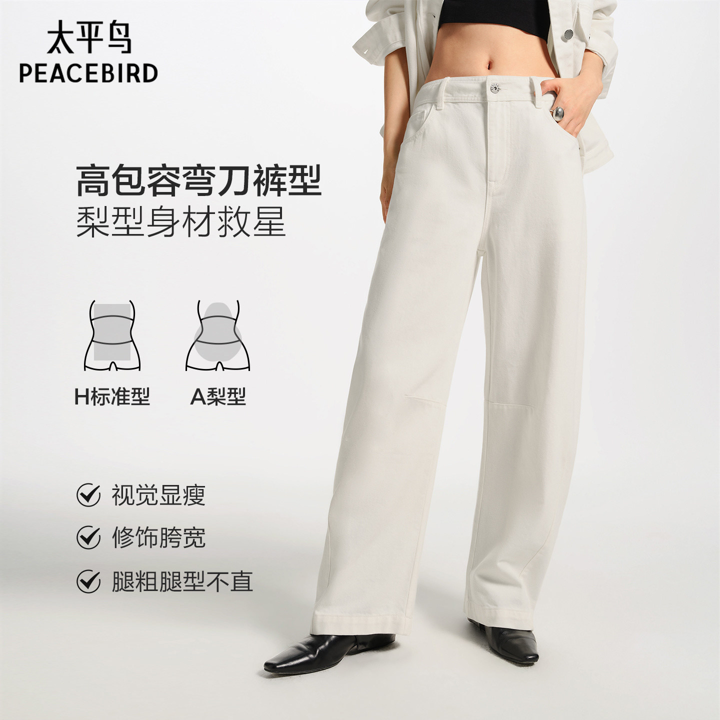 太平鸟高腰茧型香蕉牛仔裤26年春季新款宽松显瘦个性弯刀牛仔裤女