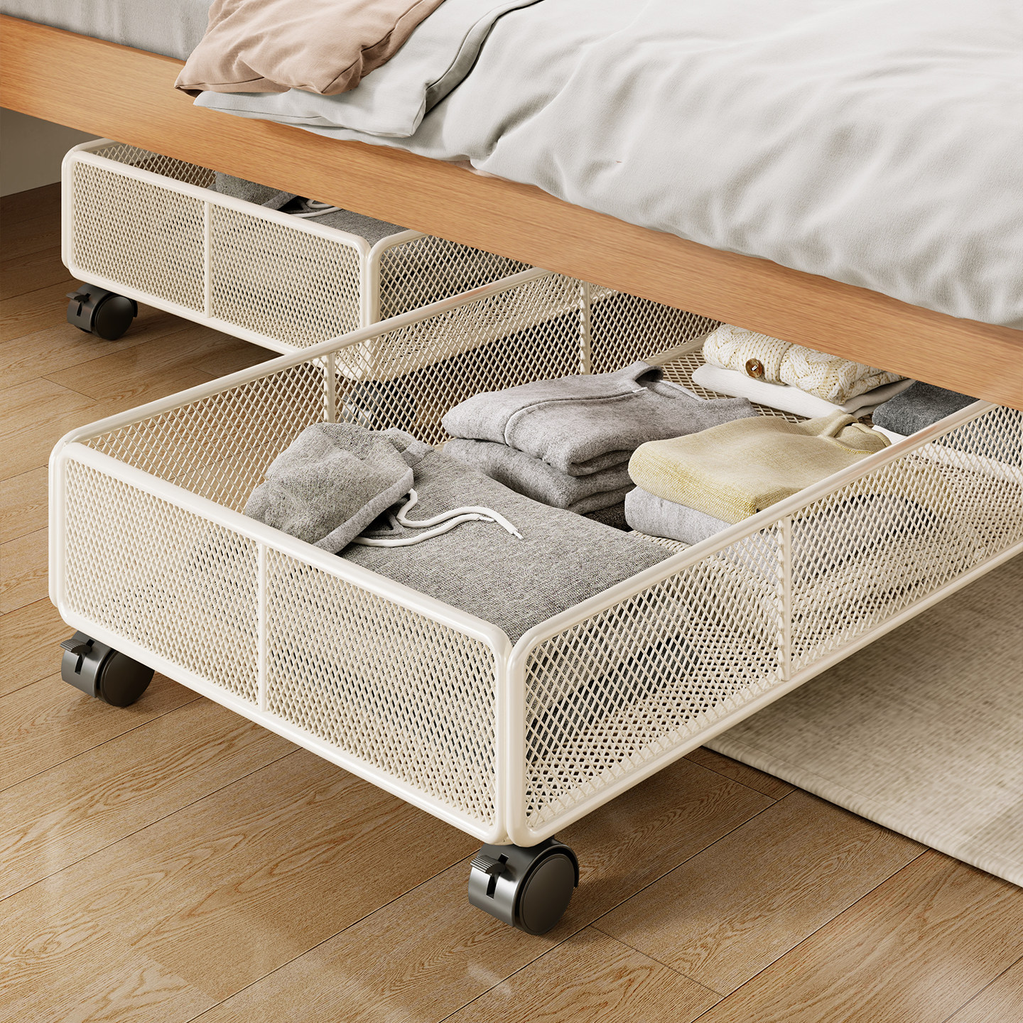 床底收纳箱可移动抽拉置物架衣服玩偶分类收纳带轮杂物整理储物盒