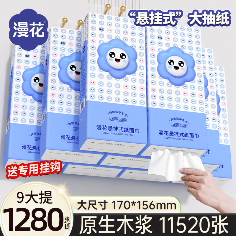 漫花悬挂式抽纸大提整箱家用挂式餐巾纸巾擦手面巾挂抽卫生纸纸抽