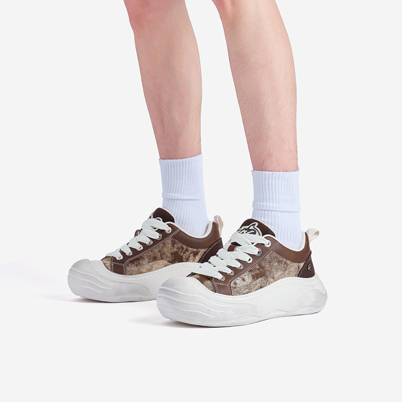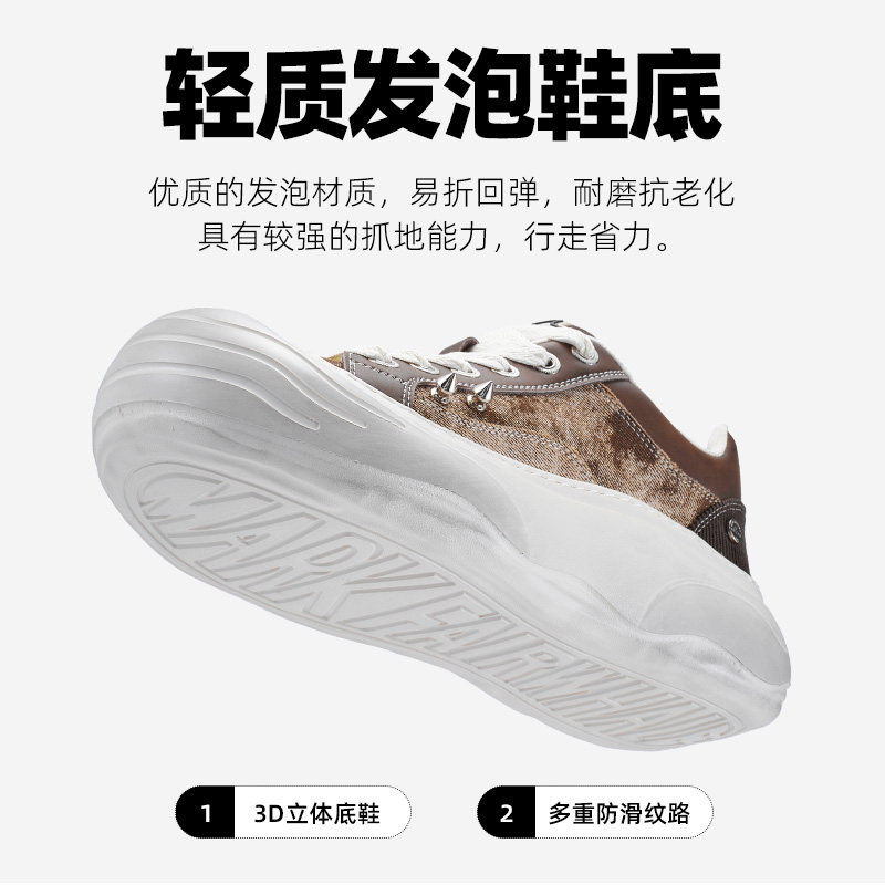 MRA碎冰美式小黑鞋板鞋男鞋2025新款厚底运动休闲鞋裂纹百搭板鞋