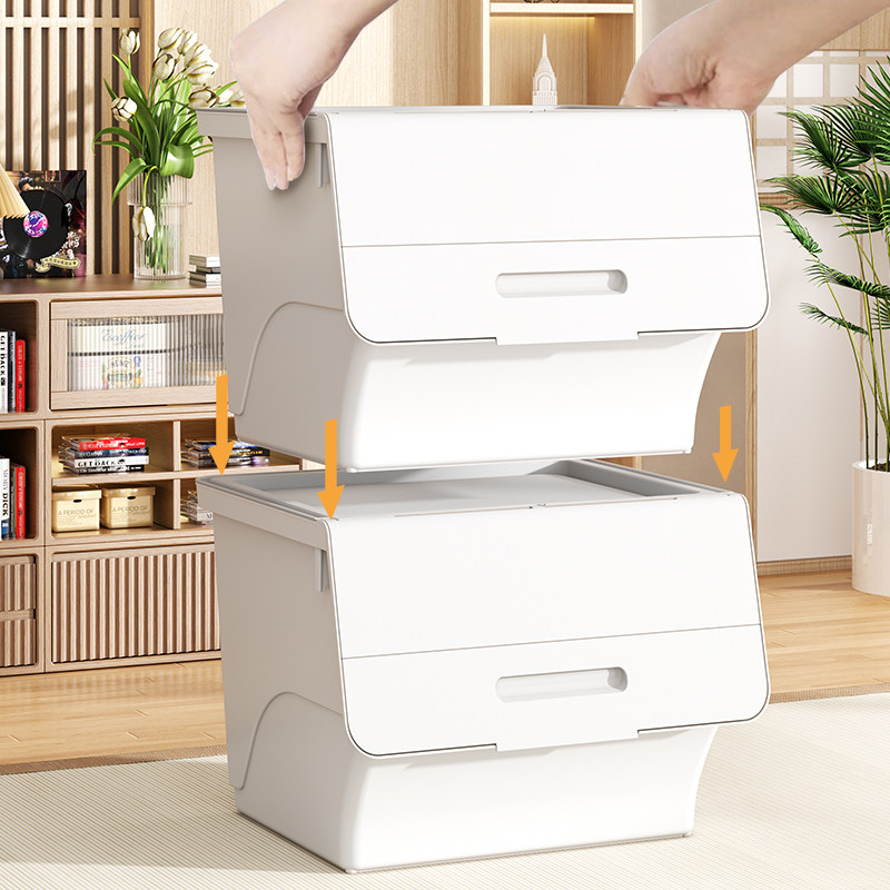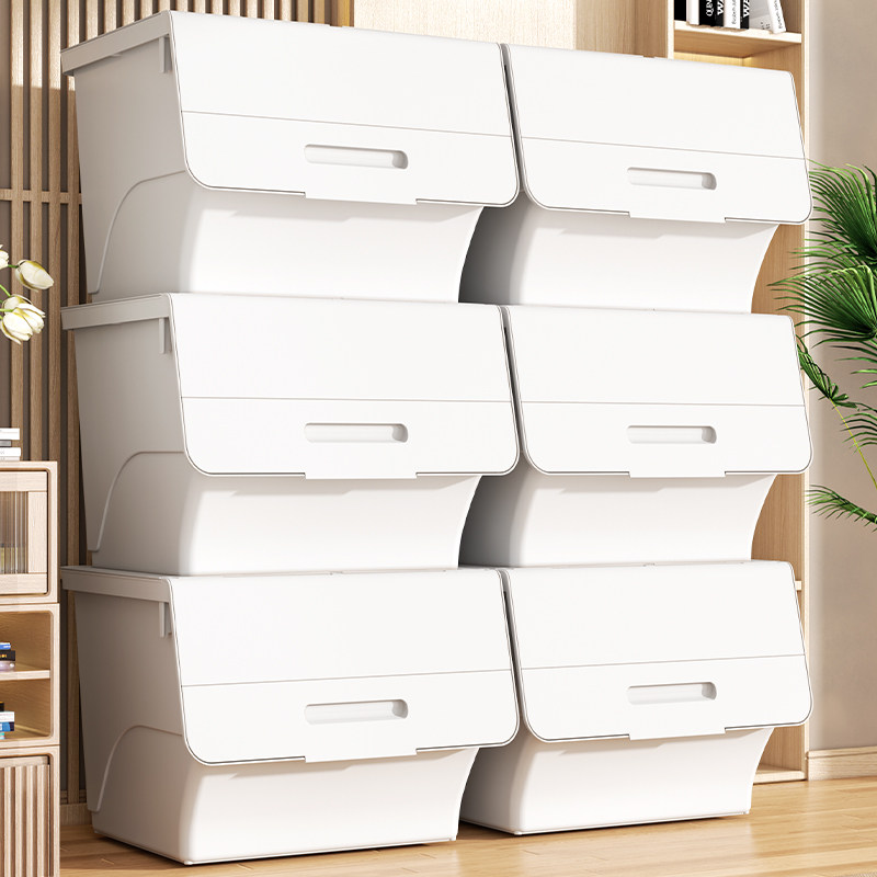 前开式儿童玩具收纳箱带盖储物箱零食衣物翻盖收纳盒整理衣柜斜口