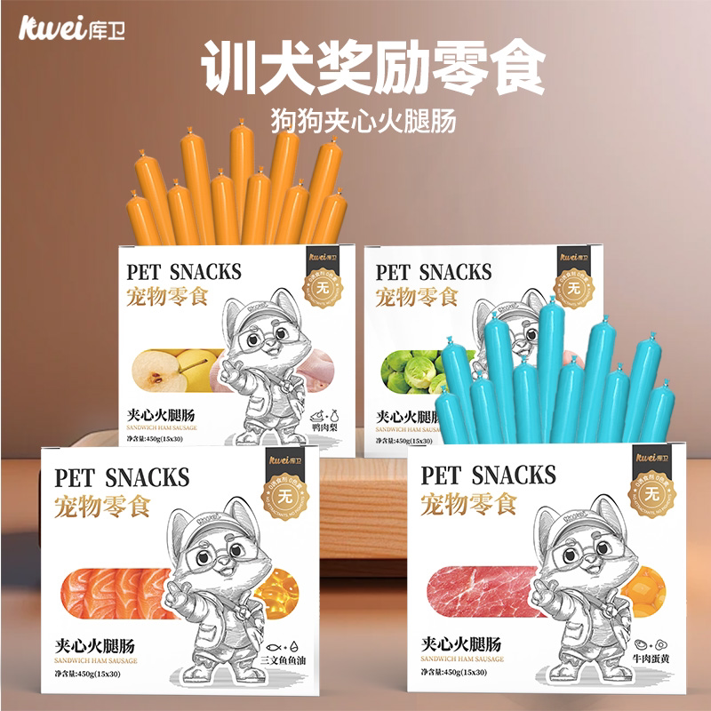 库卫狗狗火腿肠无盐幼犬宠物专用小型犬泰迪比熊训练奖励零食60支
