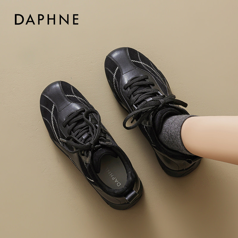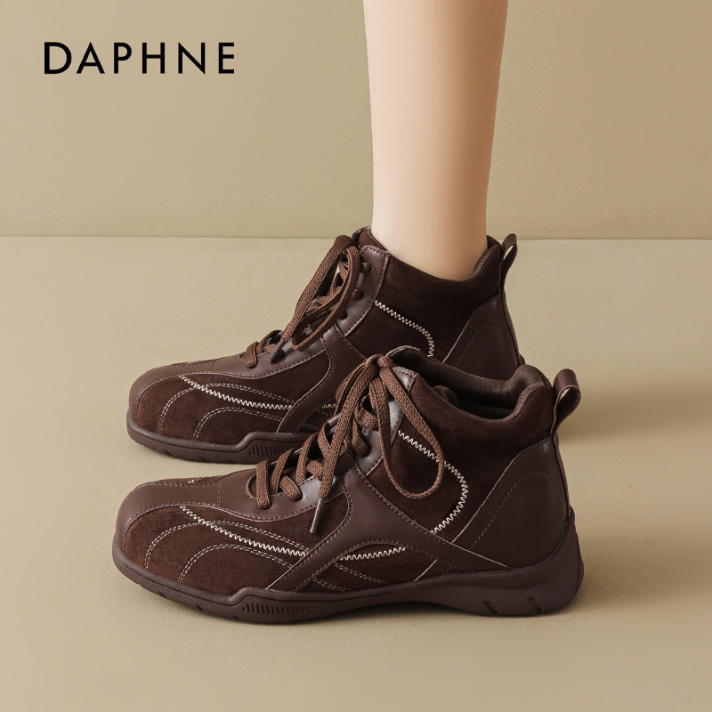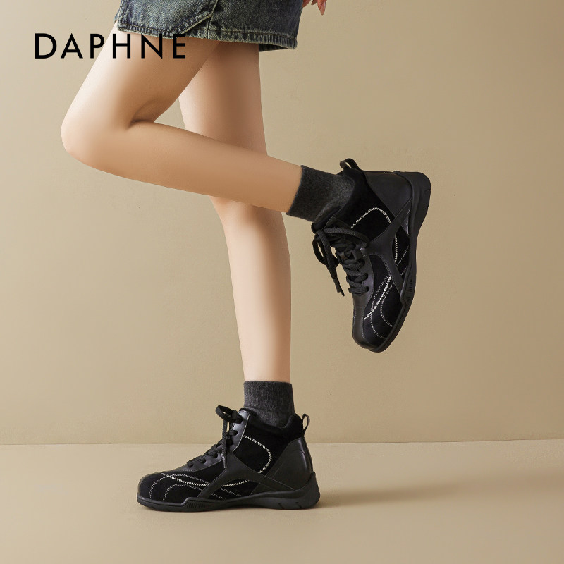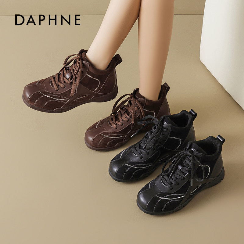 达芙妮黑色高帮德训鞋女2026新款春季厚底增高加绒棉鞋雪地靴休闲