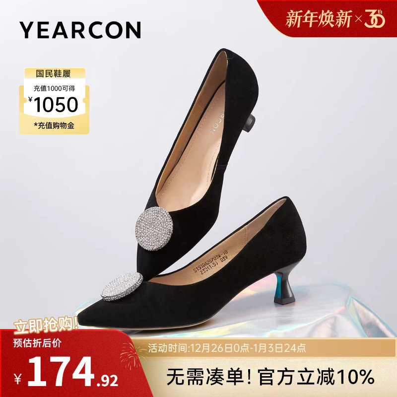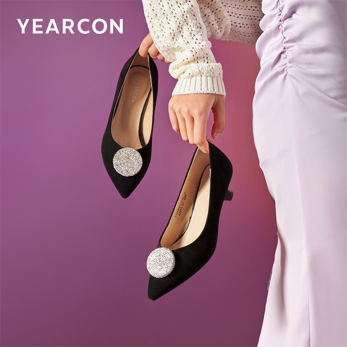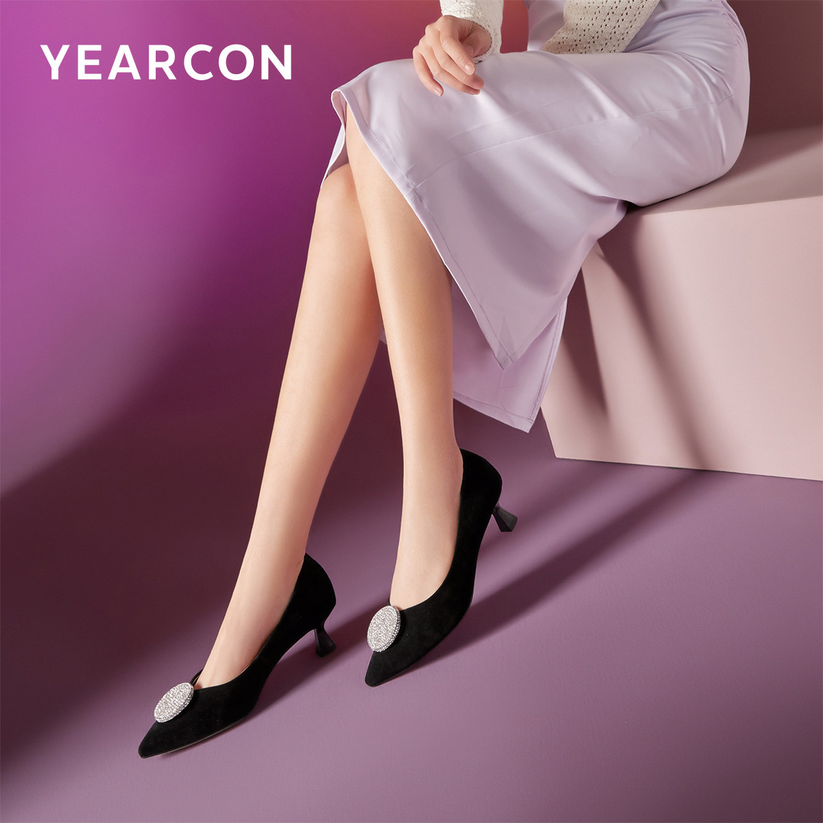 意尔康女鞋春秋季女士浅口磨砂单鞋细跟中跟高级感通勤工作鞋