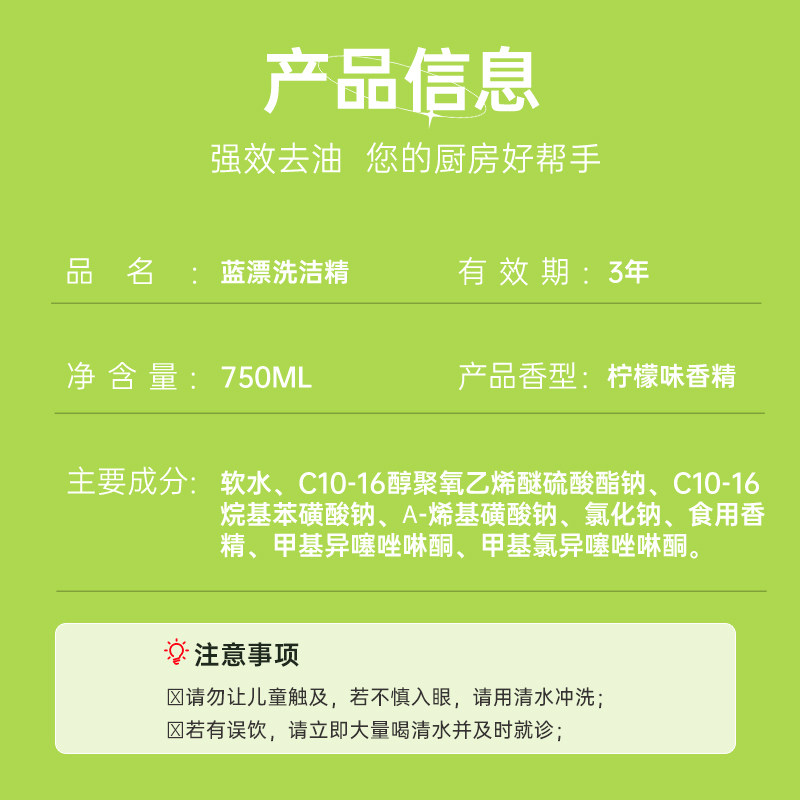 大瓶装洗洁精家用750ml洗涤剂去油果蔬厨房除污剂洗碗柠檬清洁