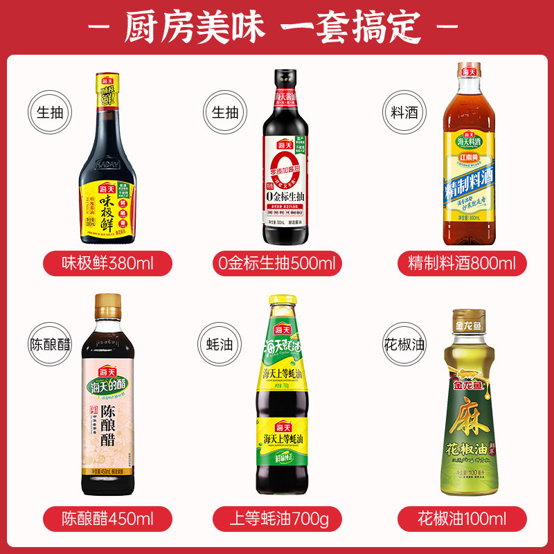海天调料组合套装酱油醋调料大全醋蚝油全套调味品寝室家庭必备