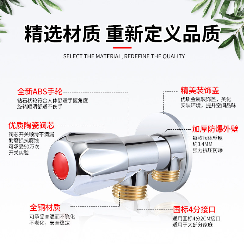 三角阀全铜冷热水器水阀门开关家用304不锈钢三通一进二出通用4分