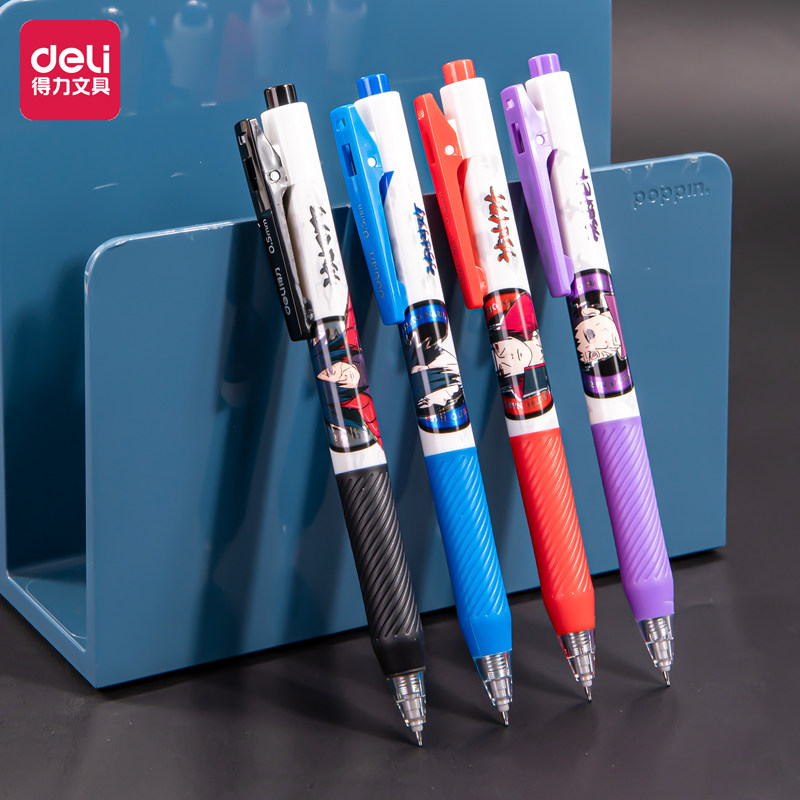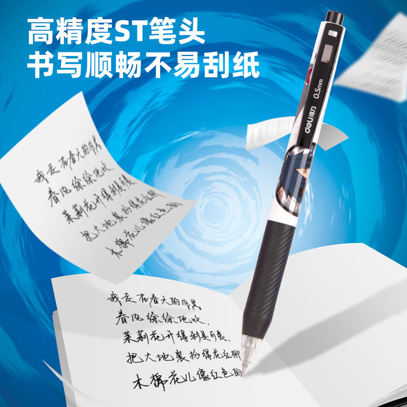 得力火影忍者联名限定按动速干中性笔中小学生动漫ST笔尖按压式备考刷题签字笔日系高颜值CS尖大容量黑色水笔