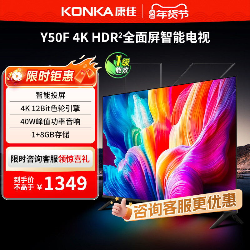 康佳 Y50F 50英寸电视机4K智能网络wifi液晶彩电官方正品节能新品