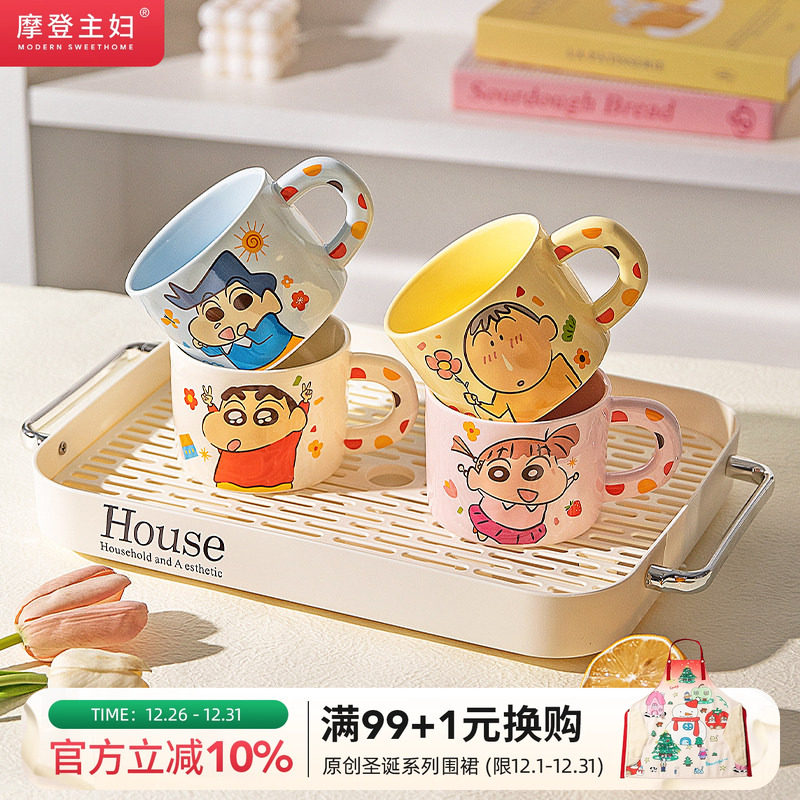 【摩登主妇&蜡笔小新】陶瓷马克杯早餐杯儿童家用喝水杯情侣杯子