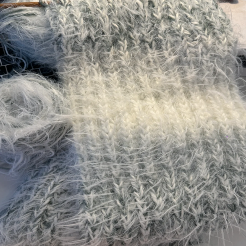 灰白渐变围巾手工diy毛线自制围脖材料包编织温暖长毛手混线礼物