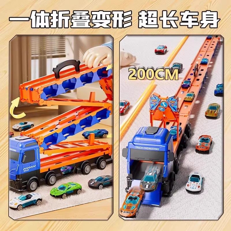 儿童玩具车按压惯性轨道弹射车可变形大号货柜卡车男孩生日礼物