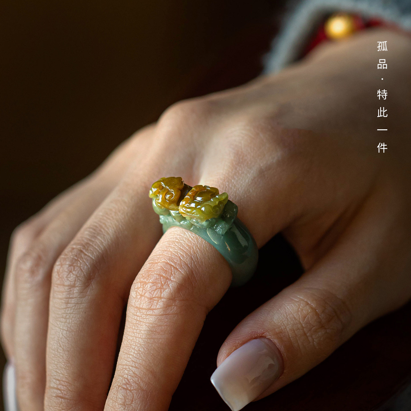 孤品【翡翠·招财貔貅】天然翡翠戒指男女高档国风礼物 一物一证