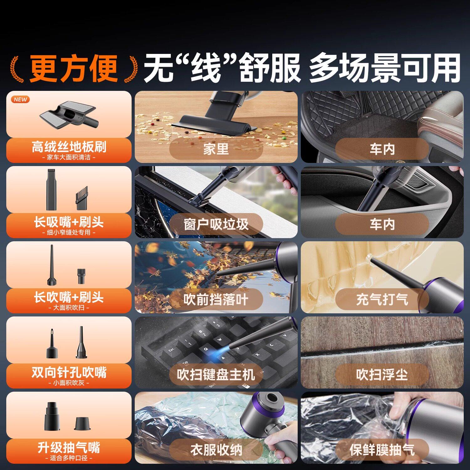 凌匠5合1无刷大吸力无线车载吸尘器强力吸吹一体汽车家车两用小型